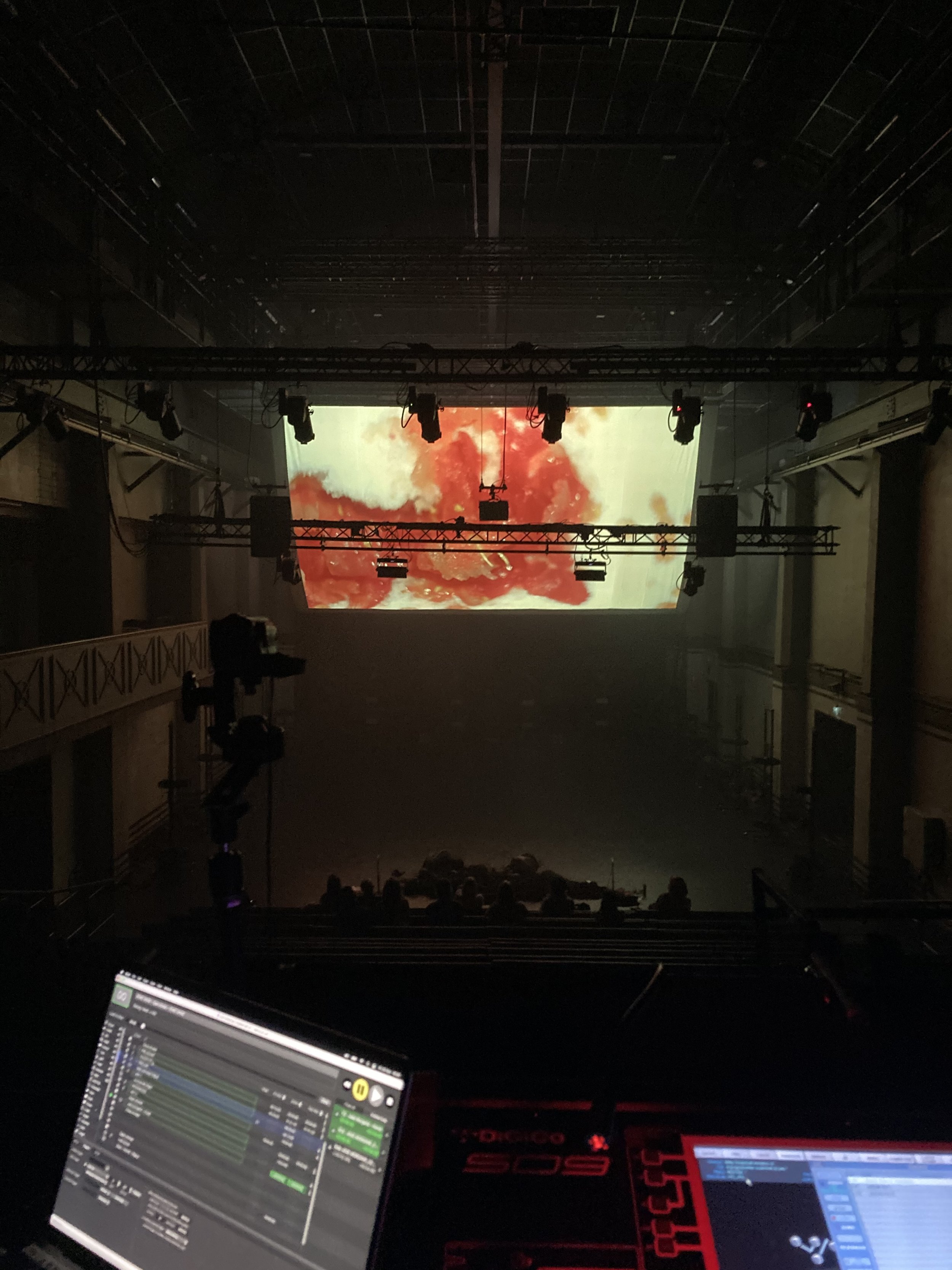 Till exempel, när vi mosade låtsashjärtan av vegansk gelatin och tomater med våra nävar i GROV så ville jag gestalta något taktilt, aktivera en haptisk blick genom att låta handen mosa sig igenom något mjuk och bjuda in publiken till att betrakta med vad som kallats för “ett ögats tunga”. Den lilla ”asmr-konserten” med ljud av raklödder och Samarin är ett försök att manifestera eller gestalta kärlekens konsistenser med ljud. Jag ville få fram det konkreta och taktila, i det här fallet genom att rikta hörsel och syn mot textur och konsistens.